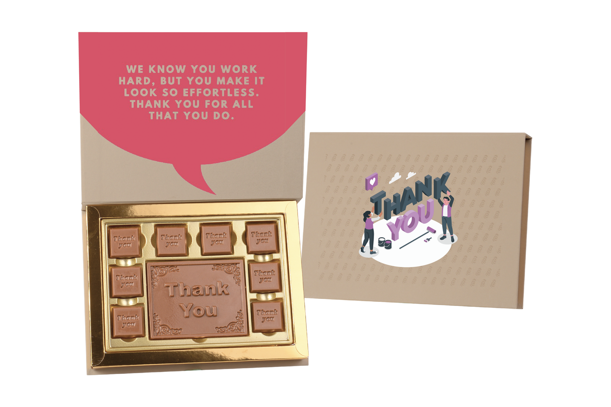 With vibrant full-colour printing spanning the exterior of the box, and every delectable piece of custom-crafted chocolate adorned with your artwork within, lifting the lid on these beautiful boxes will have your recipient unveiling excitement.